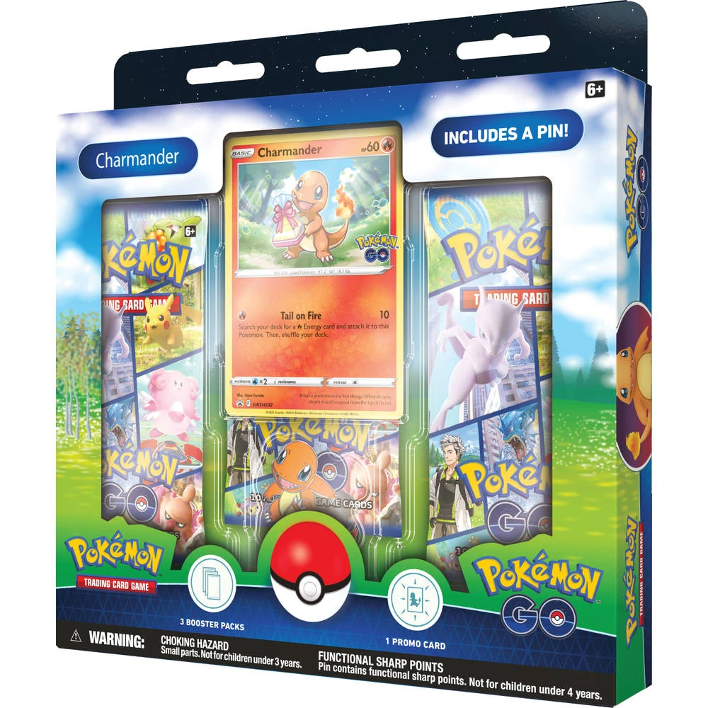 Deze coole Pokémon Go TCG pin box bevat onder meer een foil promokaart van Charmander, een speciale pin en 3 boosterpacks.
