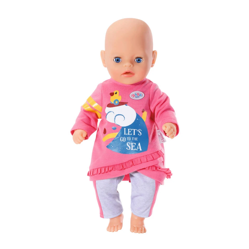 Tijd voor een nieuwe outfit voor je BABY born pop? Deze kledingset bevat een leuk jurk en broek voor je pop. De trui is roze van kleur en is voorzien van een leuke print. De broek is grijs met roze strepen aan de zijkant. Waar gaan jullie naartoe in deze outfit? Het winkelcentrum of gewoon lekker wandelen in het park? Ze valt absoluut op in haar nieuwe outfit.