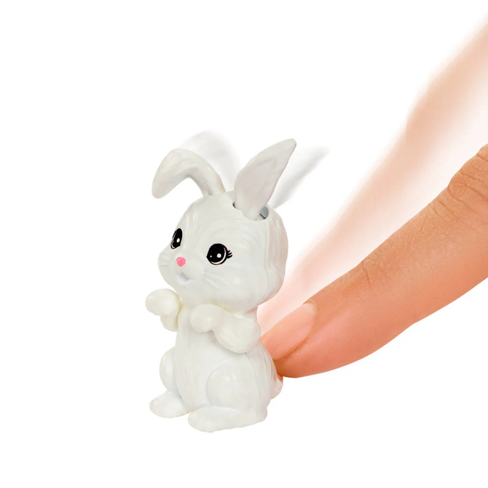 - Zeg maar hoi tegen je twee dierenvriendjes! Druk op de staart van het konijntje om zijn oren te zien wiebelen en druk op de staart van de eekhoorn om hem te zien knabbelen aan een eikel.
