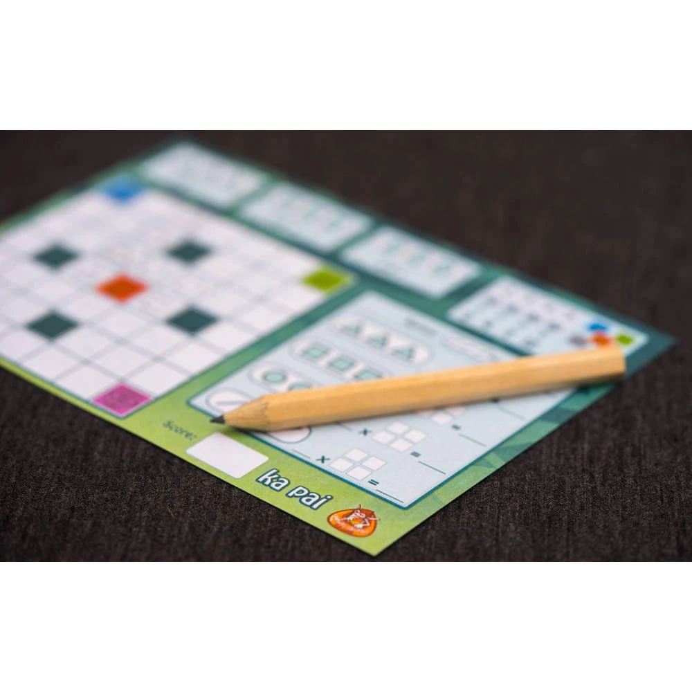 Speel dit leuke Ka Pai dobbelspel. Gooi de dobbelstenen en teken de symbolen voor de verschillende Māori-stammen op je blad. Door deze symbolen slim te plaatsen kun je totems met elkaar verbinden. Maak groepen met drie symbolen om (bonus)punten te scoren. Ka Pai is een vlot spel en kent geen beurten. Iedereen moet de symbolen van de worp tekenen. Lukt het om je blad zo in te vullen dat je de meeste punten scoort?