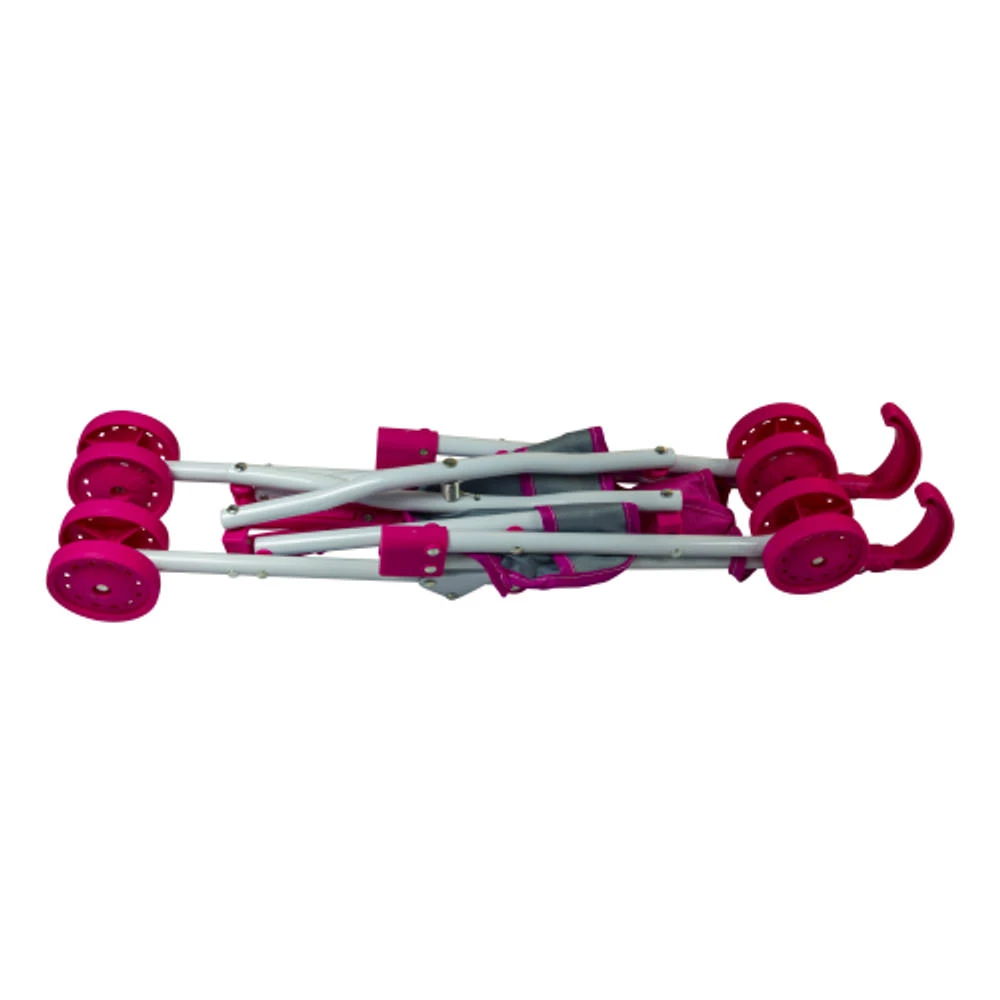 Met deze opvouwbare poppenwagen kan de pop gewoon mee op vakantie. Uitgevoerd in roze en simpel op te vouwen. Zo kan de pop overal mee naar toe.