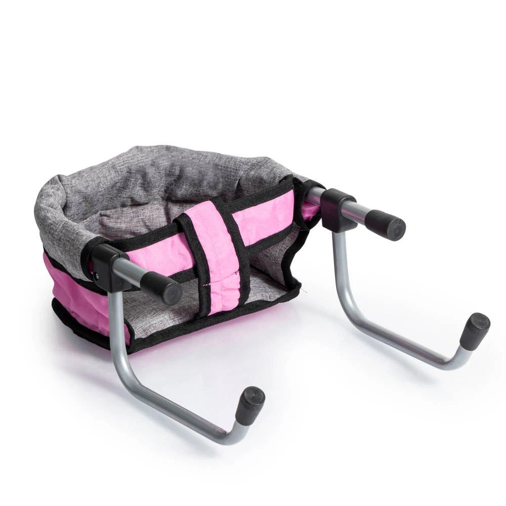 Laat je pop gezellig meedineren met dit trendy, gekleurde tafelzitje. Door de geïntegreerde veiligheidsgordel kan je pop veilig aan tafel zitten. Deze stoel is geschikt voor poppen tot 46 cm.