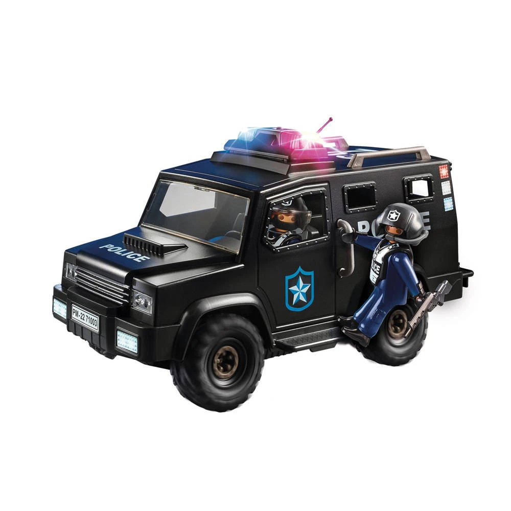 - Deze set bestaat uit twee Playmobil-figuren, een SWAT-truck, helmen en allerlei andere beschermingsmiddelen voor spannende missies.