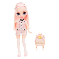Rainbow High stimuleert creativiteit! Ga terug in de tijd en ontmoet je favoriete leerlingen Bella, Stella, Karma, River, Krystal en Amaya voordat ze met elkaar bevriend raakten en hun creatieve dromen volgden naar Rainbow High. Elke speelset met thema is inclusief een complete poppenoutfit, een pop met een nieuw, jonger gezichtje en een rugzak van zachte stof om alle spulletjes voor op school in mee te nemen. Ze hebben schitterende kenmerken! Bella Parker is van top tot teen gekleed in het ROZE. Ze heeft een supermooi, jonger gezichtje, mode met prachtige details, schitterend lang, roze haar, lange wimpers en glazen ogen.