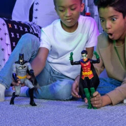 Bedenk je eigen superheldenverhalen en houd Gotham veilig met deze coole DC Comics Robin pop van 30 cm groot. Het actiefiguur is buigbaar voor de stoerste poses.