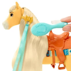 Met de Spirit set Fancy Festival Chica Linda met een zadel om een pop op te zetten kun je het haar van het paard stylen.
