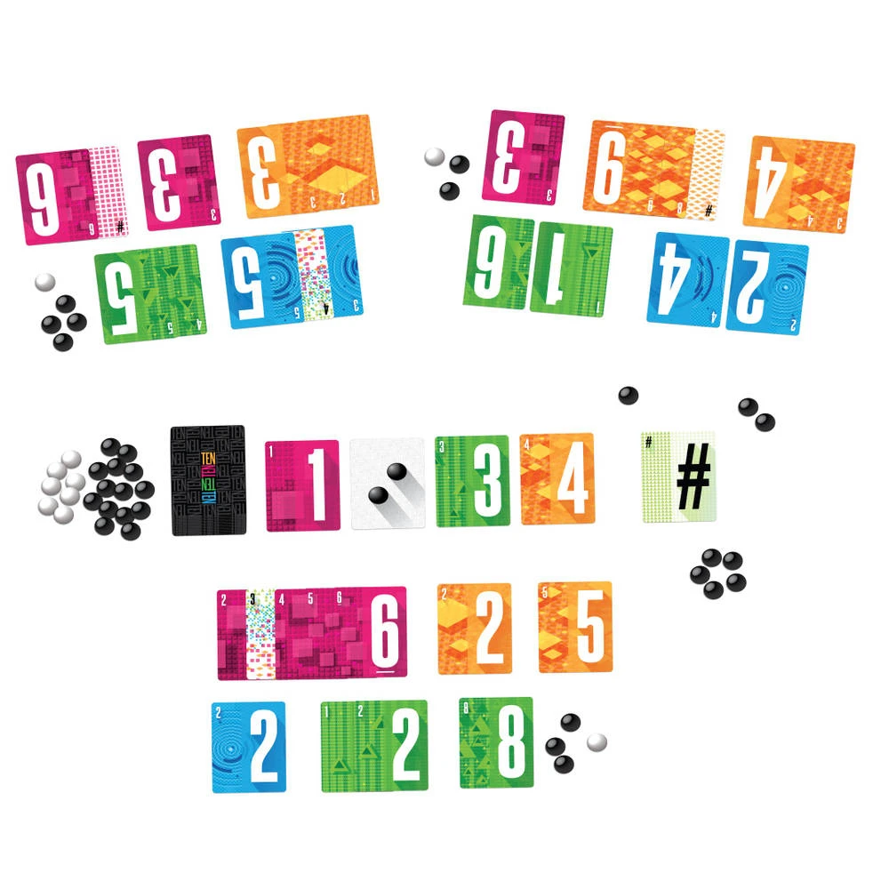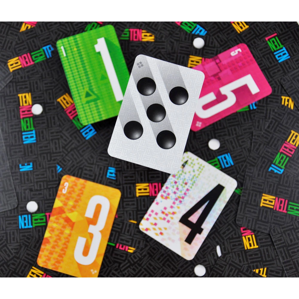 Je hebt superveel fun met Ten! Het is een spannend kaartspel waarin je met de juiste strategie en een beetje geluk een zo lang mogelijke rij van opeenvolgende nummers in elk van de vier kleuren probeert te vormen. In je beurt pak je één voor één kaarten van de trekstapel en probeer je de beurt te eindigen met een zo groot mogelijke beloning. Maar pas op: je zult niks krijgen als je boven de tien uit komt. De speler die aan het einde van het spel de meeste punten heeft, wint het spel!