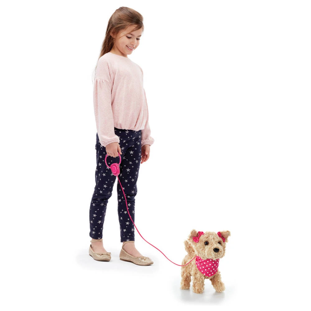 Kindjes kunnen knuffelen, lopen en spelen met deze Walk Along puppy. De puppy kan lopen, kwispelen en blaffen.